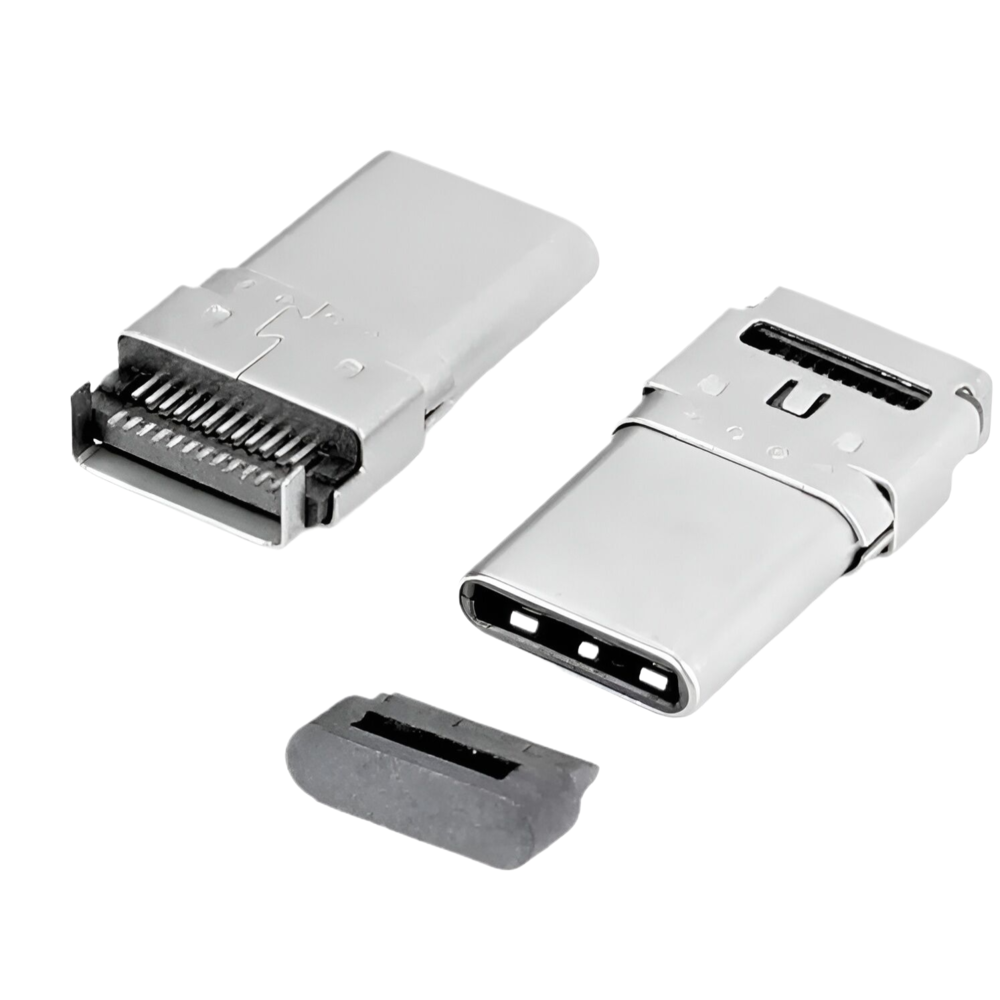 TYPE C 24P公頭 兩腳沉板1.3MM 雙排貼片SMT CH=0.15MM 長度L=15.5MM 雙殼